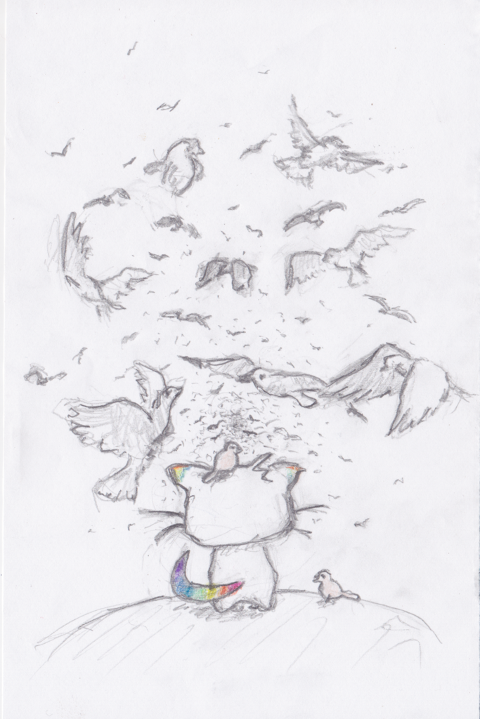 I wasn't expecting this at all, I don't really have any words for it. A bit surreal maybe? Looks like I may need to make that image come true some day and learn how to actually summon birds. (Other than the grackles that approach me at work.)